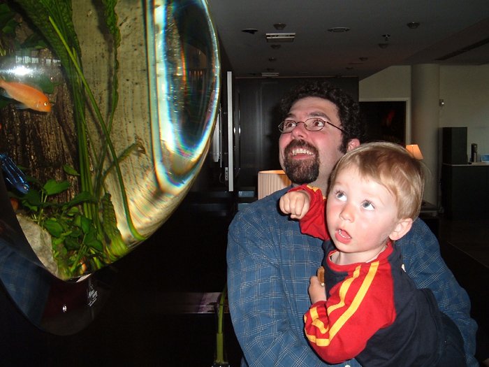 Checking out the fishies in the hotel lobby.